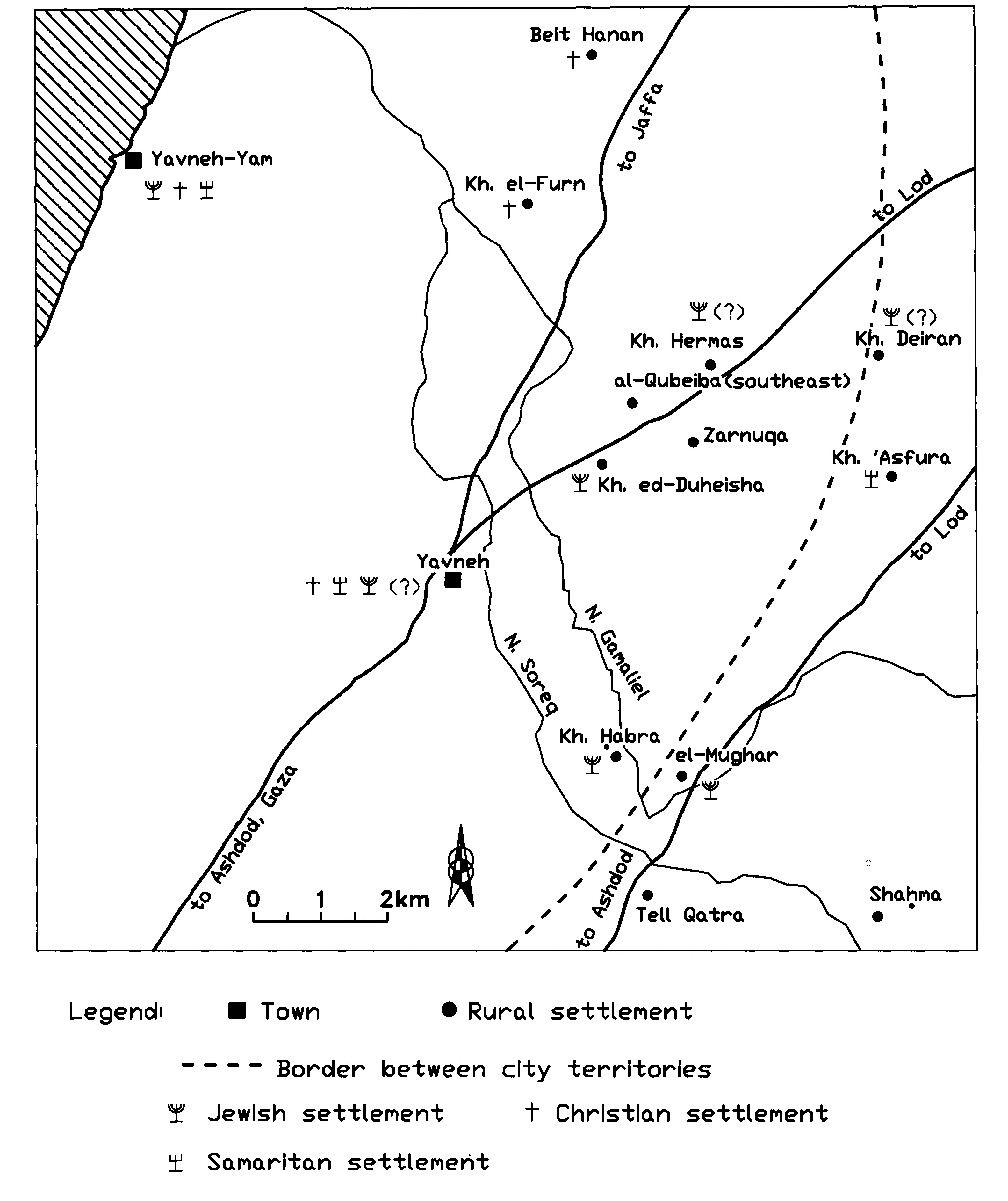 Archaeological vestiges are the sole evidence for the synagogue; the structure itself has neither been located nor subjected to excavation. For additional reference: Fischer, M., Taxel, I., and Amit, D. 2008. Rural Settlement in the Vicinity of Yavneh in the Byzantine Period: A Religio-Archaeological Perspective, BASOR 350, 7–35. https://synagogues.kinneret.ac.il/synagogues/habra/