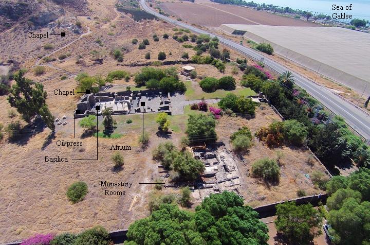 Encircled by a substantial stone perimeter wall that defines a rectangle roughly 140 by 120 meters, the monastic compound is entered from the west through a gate guarded by a watchtower, facing toward the Sea of Galilee. In antiquity, a paved approach linked this entrance to a small harbor that received Christian pilgrims arriving by boat. Within the enclosure stands the church, approximately 45 by 25 meters. Access to its prayer hall was gained through an atrium created by a colonnaded courtyard. Inside, two parallel arcades—each comprising eight columns—carried marble capitals carved with crosses and articulated the interior into a central nave flanked by two side aisles. The floor was laid with polychrome tesserae; although mosaic pavements survive only in the aisles, vestiges of vegetal and animal imagery remain, including grapes, figs, pomegranates, fish, birds, and waterfowl. Most animal figures were nearly erased, probably by adherents of the iconoclastic movement active in the early Muslim period. At the eastern end, a raised apse is flanked by two square chambers; one functioned as a baptistery, as confirmed by a Greek inscription dedicating it to Abbot Stephanos during the reign of Emperor Mauricius at the close of the sixth century. The earliest construction phase of the church belongs to the late fifth century, while the monastery itself appears firmly established by the sixth century. Image source: https://www.biblewalks.com/kursi Further reading: https://dig.corps-cmhl.huji.ac.il/Monasteries/kursi-gerasa-chorsia-gergesa-monastery https://www.jewishvirtuallibrary.org/kursi-christian-monastery https://www.biblewalks.com/kursi https://architectureandasceticism.exeter.ac.uk/items/show/187