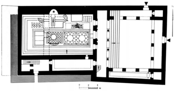 The structure underwent multiple building campaigns that included initial construction, subsequent repairs, and later refurbishments. Its fundamental scheme appears to have been set in an early phase, likely in the fourth century CE: a forecourt led to a narthex, beyond which lay a large assembly hall and the first of two ancillary rooms; a gallery was added above at a later date. The complex is oriented northward toward Jerusalem. The northern wall, markedly thicker than the others, probably accommodated the Torah ark; it also preserves evidence of two niches. The earliest pavement consisted of a plain white mosaic. During a second phase a polychrome mosaic floor was installed, and it was reworked and patched more than once thereafter. In its mature state, the hall’s mosaic carpet was divided into three panels that featured geometric ornament, a zodiac cycle, an image of a Torah shrine with an ark flanked by two menorahs, and, apparently, a scene of Daniel in the lions’ den. In the eighth century, figural elements were replaced by non-figural geometric designs, probably in response to iconoclastic currents. In addition to the mosaics, numerous marble fragments inscribed with words or letters were recovered. These derive from chancel screens, a carved menorah, and other components of the bema dating to the building’s period of florescence, perhaps in the fifth century. The complex was converted into a mosque in the eighth–ninth centuries. An Arabic inscription from the southern sector of the courtyard records the year 905 CE. Inscriptions: - Ten major inscriptions and eight small fragments preserving only a few letters were documented; several of the small pieces may belong to chancel screens (CIIP IV 3880–3881). - CIIP IV 3870: https://library.brown.edu/iip/viewinscr/ksus0001/ - CIIP IV 3871: https://library.brown.edu/iip/viewinscr/ksus0003/ - CIIP IV 3872: https://library.brown.edu/iip/viewinscr/ksus0002/ - CIIP IV 3873: fragmentary - CIIP IV 3874: https://library.brown.edu/iip/viewinscr/ksus0004/ - CIIP IV 3875: fragmentary - CIIP IV 3876: https://library.brown.edu/iip/viewinscr/ksus0008/ - CIIP IV 3877 - CIIP IV 3878: https://library.brown.edu/iip/viewinscr/ksus0005/ - CIIP IV 3879: fragmentary - CIIP IV 3880 (right-hand arch of the chancel screen) - CIIP IV 3881: https://library.brown.edu/iip/viewinscr/ksus0006/ (central arch of the chancel screen) - CIIP IV 3882: https://library.brown.edu/iip/viewinscr/ksus0007/ (left-hand arch of the chancel screen) - CIIP IV 3883–3887: fragmentary Plan source: - CIIP IV, fig. 3870 Bibliography: - CIIP IV 3870–3887. The synagogue, p. 1415 - Milson 2007: 467–468 - Werlin 2015: 142–164 - https://synagogues.kinneret.ac.il/synagogues/susiya/ - https://library.brown.edu/iip/