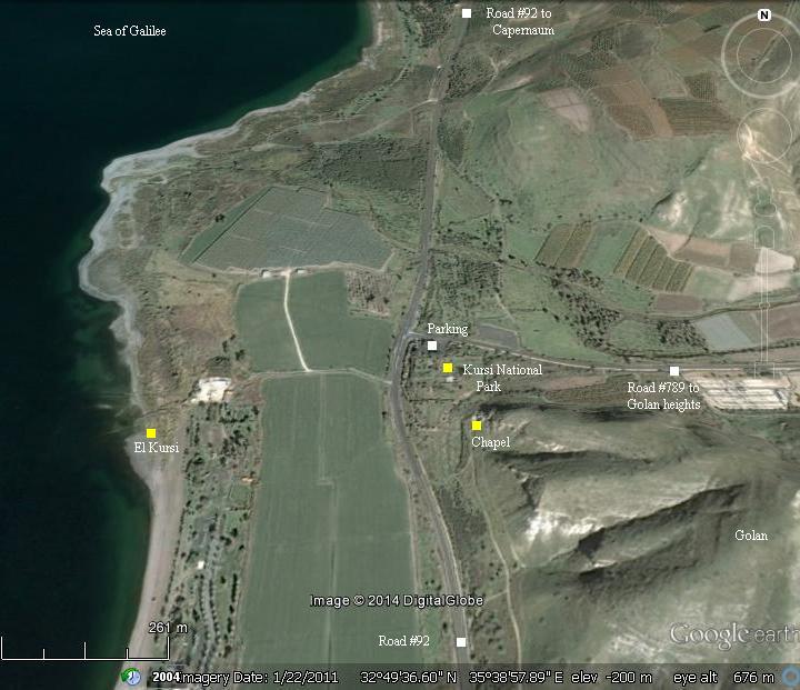 Kursi lies on the eastern side of the Sea of Galilee, at the outlet of a wadi descending from the Golan Heights that creates a fertile strip along the lakeshore. A large Byzantine monastic complex was established here, possibly in response to the local tradition that located a Gospel miracle at this spot. The remains were uncovered inadvertently during road construction and subsequently excavated between 1971 and 1974. The church and associated monastic buildings date to the sixth century CE. The site is now incorporated into Kursi National Park and is accessible to visitors. In Christian tradition the area was identified with Gergesa, where Jesus expelled demons into a herd of pigs that then rushed down a steep slope into the water (Mark 5:13). This attribution has been disputed, however, with alternative locations proposed at Hippos to the south and Tel Hadar to the north. A separate discovery concerns the lakeside synagogue at Kursi, which went unrecognized until excavations began in 2015. Situated north of Tell Kursi (el-Kursi), the synagogue yielded a notable find: a marble floor panel inscribed with a dedicatory text in JPA. Further reading: https://www.biblewalks.com/kursi Nun, M. 1989. Gergesa (Kursi) Site of a Miracle Church & Fishing Village. Ein Gev, 9-11. Bauckham, R. 2015 “Gergesa is Tel Hadar, not Kursi,” Revue Biblique 122/2, 268–283. http://www.jstor.org/stable/44092333.