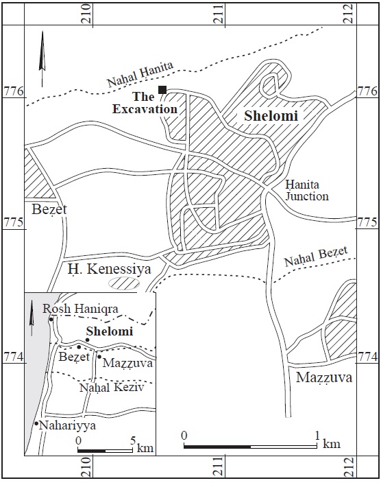 In 1964, Claudine Dauphin conducted excavations on the northwest-facing slope of the hill within the modern settlement of Shelomi, an area situated roughly 10 km northeast of Nahariyya. The investigations uncovered an agrarian installation of the Late Antique period covering approximately 500 square meters. The complex included a water cistern and areas paved with mosaic. Scholarly opinion regarding the character of the inhabitants and the complex’s function is divided. One line of interpretation views the occupants as tenants associated with a monastery, whereas others question this scenario, noting that the presence of mosaic flooring seems inconsistent with accommodation for modest farming households. A staircase indicating an upper storey has prompted the suggestion that a chapel may have been located on the higher level. Further reading: CIIP V chapter XVIII. Shelomi p. 133-135. Dauphin, C. M., 2003. "A Byzantine Ecclesiastical Farm at Shelomi", [in:] Ancient Churches Revealed, edited by Tsafrir, Y., Jerusalem: 43-48. Dauphin, C. M. and Kingsley, S. A., 2003. "Ceramic Evidence for the rise and Fall of a Late Antique Ecclesiastical Estate at Shelomi in Phoenicia Maritima", [in:] One Land - Many Cultures. Archaeological Studies in Honour of Stanislao Loffreda OFM, edited by Bottini, G. C., Di Segni, L. and Chrupcała, L. D., Jerusalem: 61-74. Tahan, H., Syon, D., 2010. A Christian Inscription at Shelomi, ‘Atiqot 62: 161-167. Shelomi in: A Digital Corpus of Early Christian Churches and Monasteries in the Holy Land (https://dig.corps-cmhl.huji.ac.il/node/217)