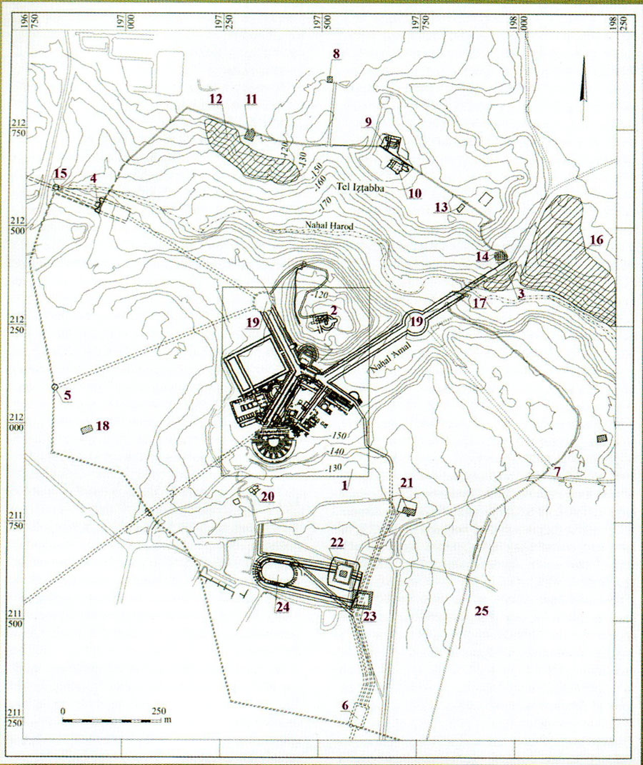 Located at the confluence of the Jordan Valley and the Jazreel Valley, Scythopolis is documented by a site plan that identifies principal features of the ancient city. The plan highlights the following components, grouped by type: - City gates: Northeast (Damascus) city gate; Northwest (Caesarea) city gate; Southwest (Neapolis) city gate; South (Jerusalem) city gate; Southeast (Gerasa) city gate. - Religious institutions: Samaritan synagogue; Church of Andreas; Church of the Martyr; Monastery of Lady Mary; Monastery; Mosque. - Cemeteries: Northern cemetery; Eastern cemetery (Tell el-Hammam). - Bridges: Eastern bridge (Jiser el-Maktu’a); Western bridge. - Civic and public architecture: Civic center; Circular piazza; Bathhouse; Amphitheater (hippodrome). - Domestic structure: House of Kyrios Leontis. - Military and administrative remains: Crusader fortress; Turkish serai. - Urban quarters and mounds: Tell Beth Shean; Hellenistic city; Extra muros quarter (Tell Naharon). Source for the plan and item descriptions: Ousterhout, R. 2013. “Beth Shean revisited: Reexamining a late antique city in transition,” Expedition Magazine 55.1: 10, Penn Museum. Accessed 1 December 2021. See: https://www.penn.museum/sites/expedition/beth-shean-plan/